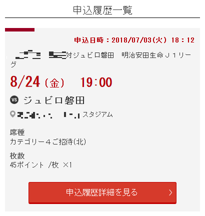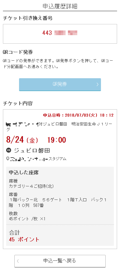 チケットの発券に必要なQRコードはこの「申込履歴詳細」から取得することができます。